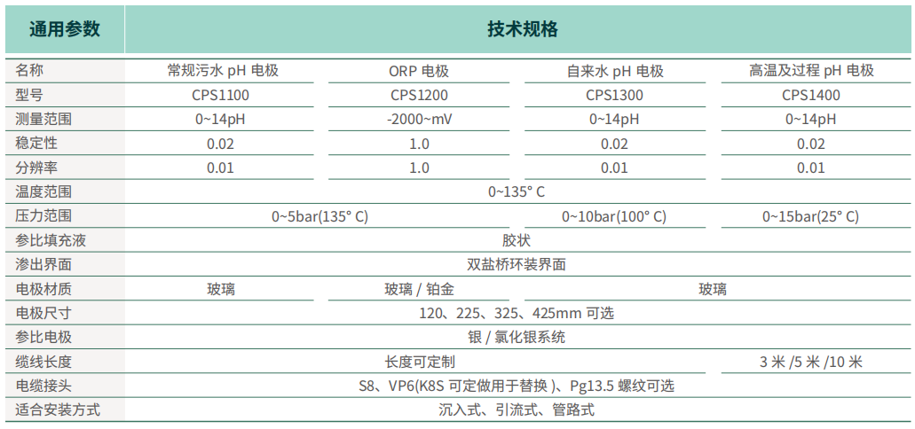 采用國際最先進的固體電介質和大面積環(huán)裝陶瓷液接界,不易阻塞,維護方便。