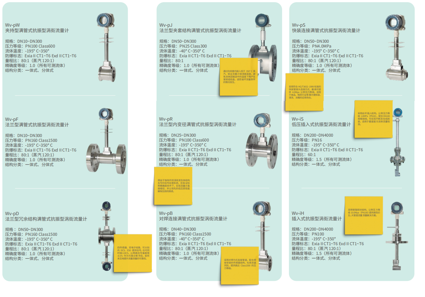 產(chǎn)品分為 Wv-p 及 Wv- 兩?系列:Wv-p 系 列?于 DN10~DN300 管道流量測(cè)量,Wv-i 系列?于DN200~DN4000 管道流量測(cè)量加之眾多的選項(xiàng),更好地服務(wù)于客戶需求。